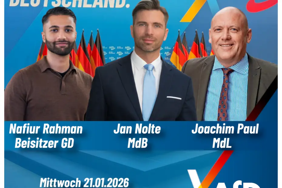 Liebe Mitglieder, Sympathisanten und Freunde der AfD Darmstadt,wir laden Sie herzlich zum Neujahrsempfang ein. Dies ist ein festlicher Start ins Jahr 2026 in unserer schönen Heimatstadt Darmstadt. Es liegt ein ereignisreiches Jahr hinter uns: Bundestagswahl,… Neujahrsempfang am 21.01.2026