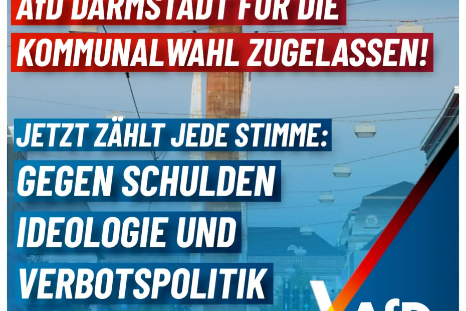 Die AfD Darmstadt ist zur Kommunalwahl 2026 zugelassen, Zeit für Darmstadt! Am 15. März entscheidet sich, ob Darmstadt weiter im linksgrünen Stillstand verharrt oder endlich Kurs auf mehr Vernunft, Sicherheit und finanzielle Entlastung nimmt. Jetzt… Kommunalwahl 2026